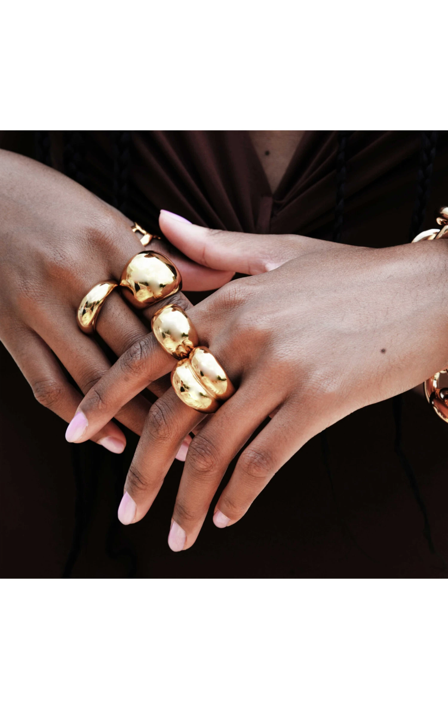 Adoptez cette bague dorée en acier inoxydable de forme jonc boule. Son look minimaliste vous permettra d’accumuler d’autres bagues pour un look élégant.