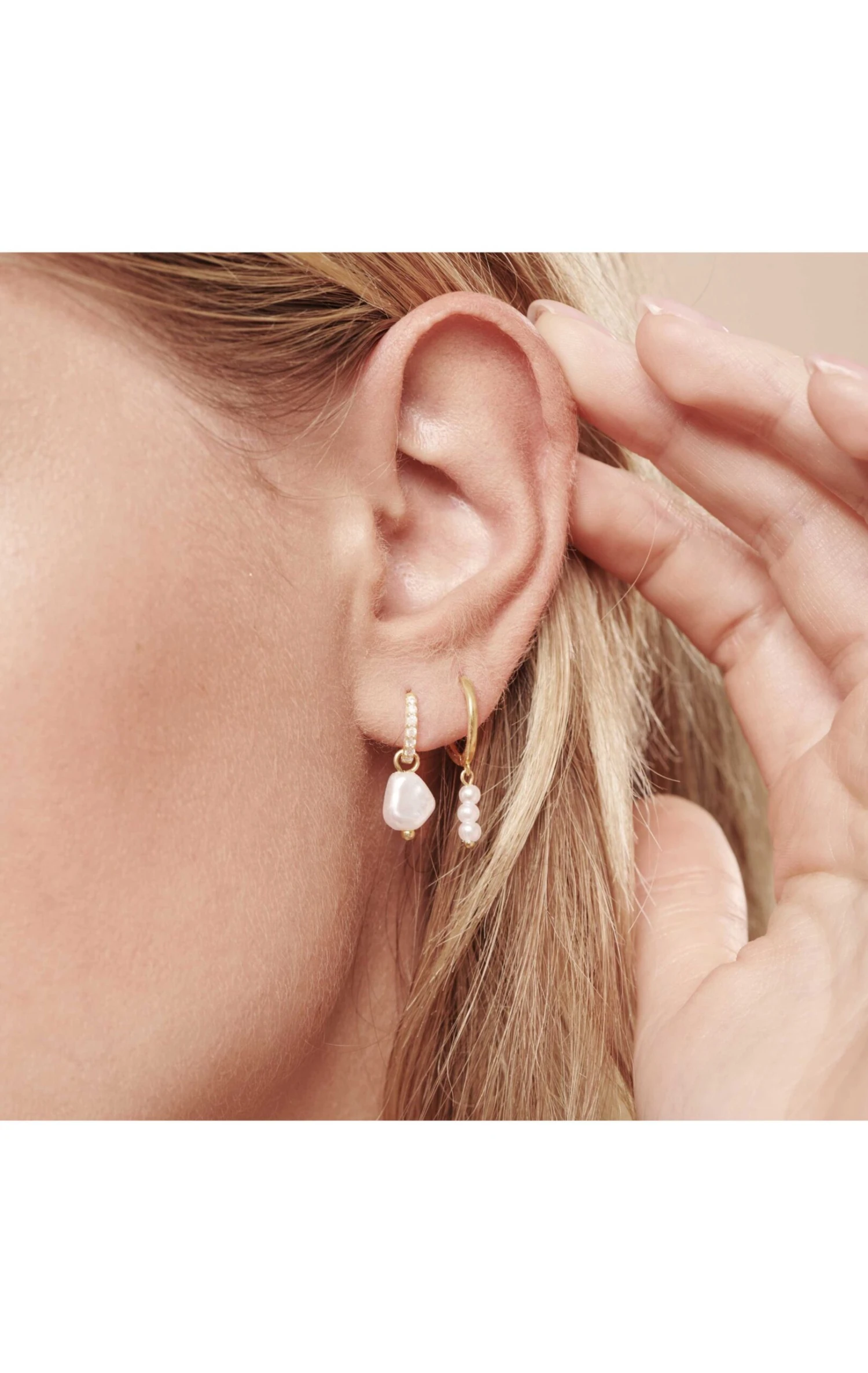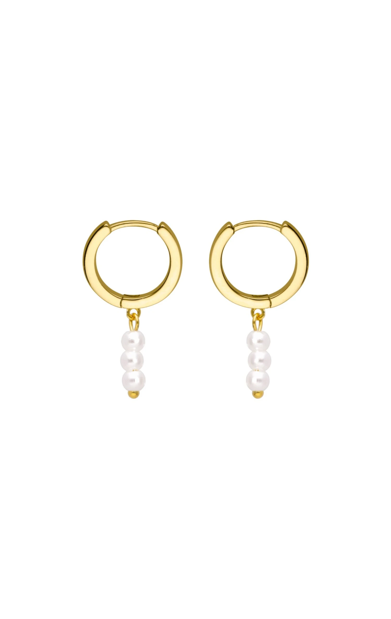 Boucles d’oreilles créoles dorées ornées de ravissants pendants composés de trois perles en nacre véritable. Hipanema revisite une pièce classique avec un twist élégant et féminin, pour glisser des perles au creux de vos oreilles.