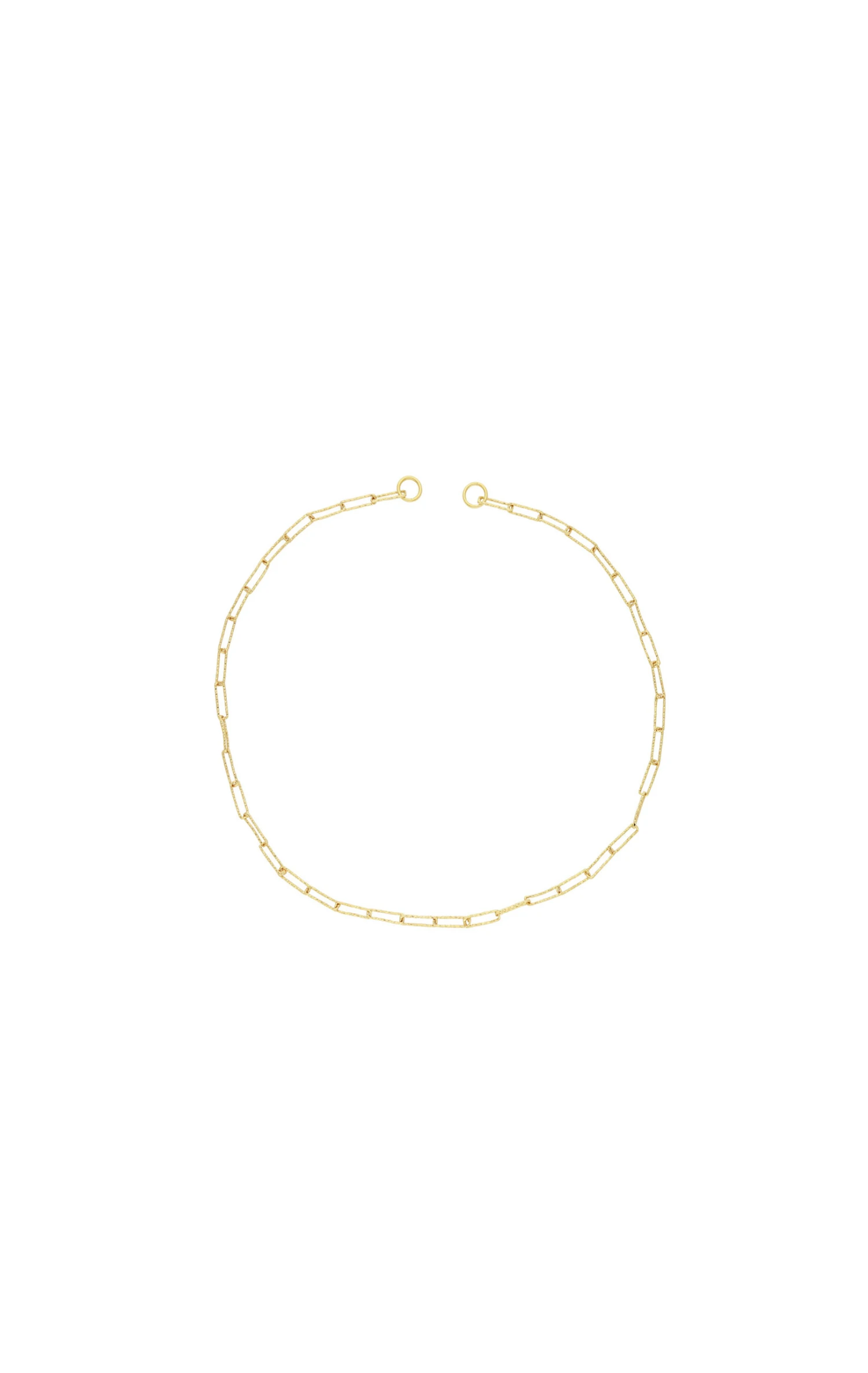 Les colliers « CRUSOE » sont les liens en chaîne. Ici vous est présentée une chaîne très fine à maillons rectangulaires martelés, dorée à l’or fin 14 carats. À associer avec les fermoirs « LOCKETS ». Fermoir non inclus, il faudra compléter votre commande avec un Locket.